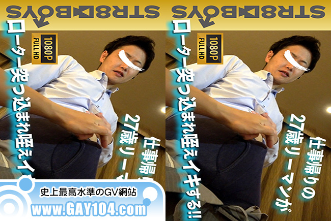 コメント:仕事帰りの27歳リーマンが再び撮影に来てくれました!!今作はケツにピンクローターを突っ込まれ口にはスタッフの肉棒が…そんな状況でまさかのノンケが咥えイキしちゃいます!!相変わらずキスがエロい彼…ねっとり舌を絡ませ開始早々からスーツの中はパンパンに興奮状態…股を大胆に広げさせアナル舐めに指入れからのローター初めてにも関わらずズル剥け太チンはギン勃ち!!ラストは咥えながら四方八方にザーメンをぶち撒ける!!