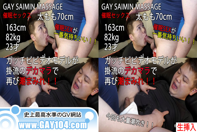 163cm 82kg 23才ガッチビビデオモデルが再び掛流とさいみんセックス!すっかりさいみんセックスに夢中のガッチビくんはピチピチのシャツがフェチらしく、今回はアンダーアーマーを着てセックスしてもらいました。すると、さいみん術&フェチの快感でいきなり興奮も最高潮に!そんなガッチビくんを目の前にして掛流も自慢のデカマラが痛いほどギンギンに!掛流のデカマラとさいみん術のWパンチで今回も潮吹きしまくり!「潮止まんないっす!」撮影後はあまりの気持ち良さに放心状態でした・・・ あなたも動画のように潮吹きしてしまうくらいの快感、さいみん術で味わってみませんか?