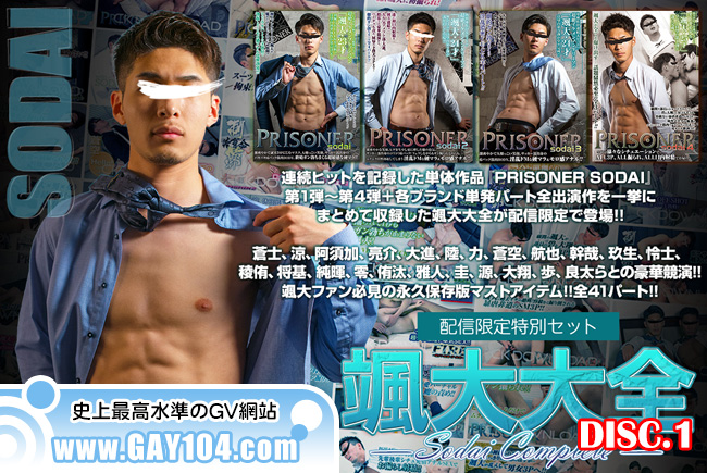 連続ヒットを記録した単体作品『PRISONER SODAI』第1弾∼第4弾+各ブランド単発パート全出演作を一挙にまとめて収録した颯大大全が配信限定で登場!!